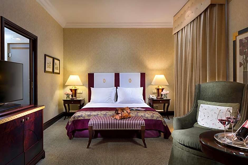 Tastefully decorated room with king-size bed, a park view and free broadband available. A marble bathroom with heated floor is fitted with a bath and a walk-in shower. Guests can relax using luxurious toiletteries and wearing fluffy bathrobes. Room includes a free access to the hotels Health Club and a Buffet breakfast.